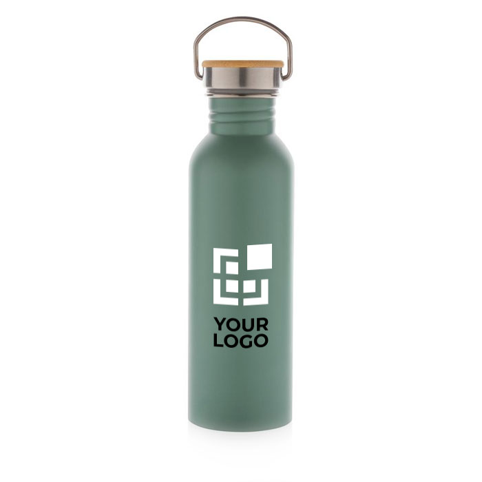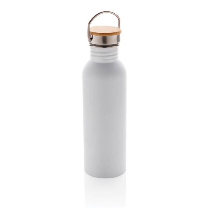 Esta moderna botella de acero inoxidable de una sola pared cuenta con una tapa de acero inoxidable terminada con una pieza de bambú. Con asa de acero inoxidable para facilitar su transporte. Capacidad 700ml. Sin BPA. Lavar únicamente a mano.