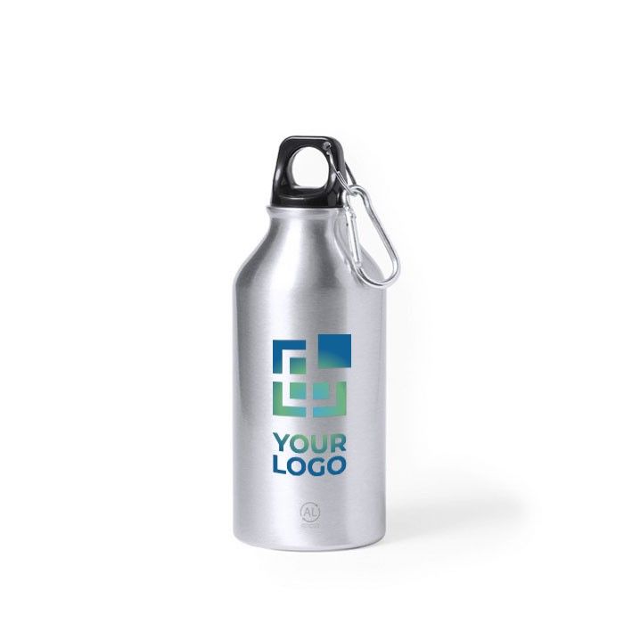 Prácticas botellas de aluminio pequeñas. Son perfectas para llevar siempre contigo en un bolso o en una mochila. Ademá, disponen de mosquetón para colgarla.