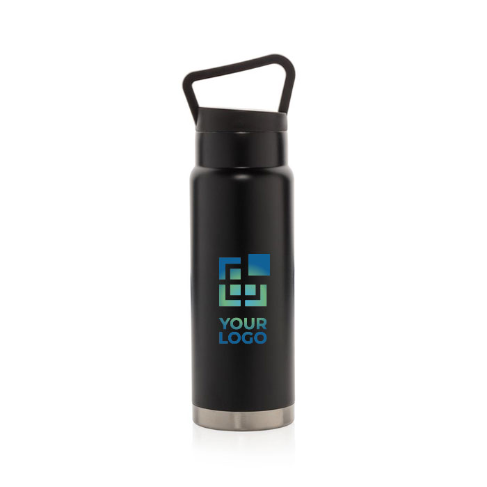 Botella de 650ml hecha de acero inoxidable de alta calidad, esta botella única también tiene un doble aislamiento para mantener tu bebida fría durante 15h o caliente hasta 5h. Asa en la parte superior de la tapa para llevarla a todas partes. Sin BPA.