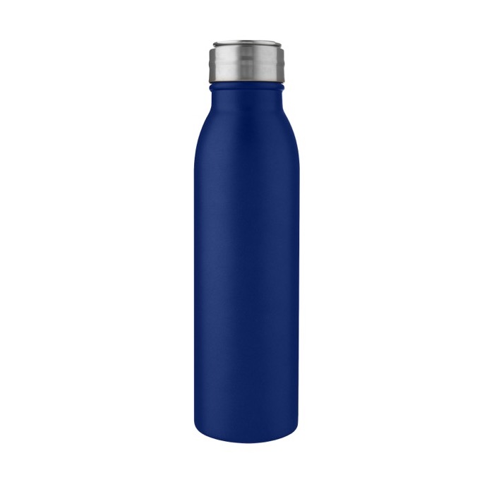 Bidón deportivo de 700ml de acero inoxidable 18/8 de una sola pared con tapa de rosca a prueba de derrames y asa de mano de aleación de zinc resistente. Sin BPA. Se recomienda lavarla a mano. Se presenta en una caja de cartón reciclado.