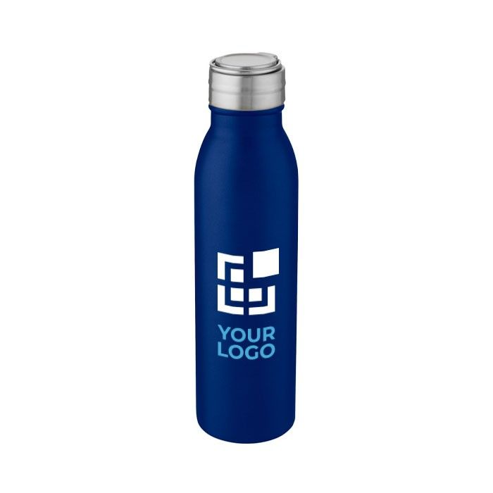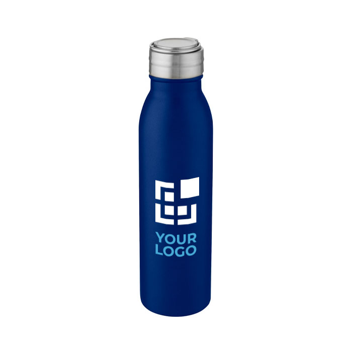 Botellas de agua térmicas personalizadas con tapón de rosca antifugas. Mantiene la temperatura interior durante horas, tanto bebidas frías como calientes.