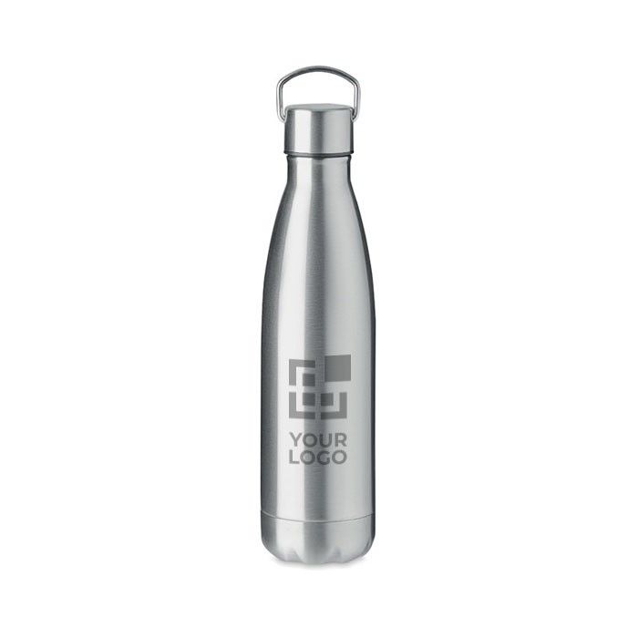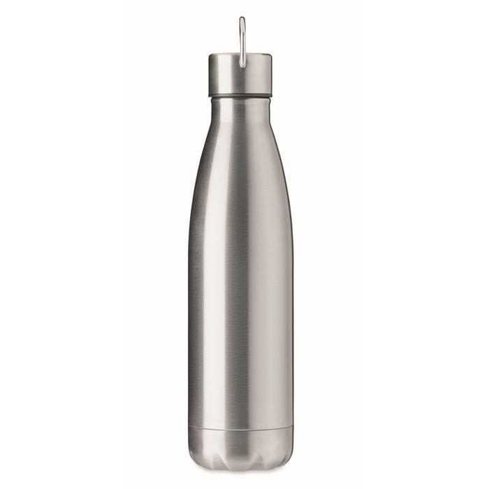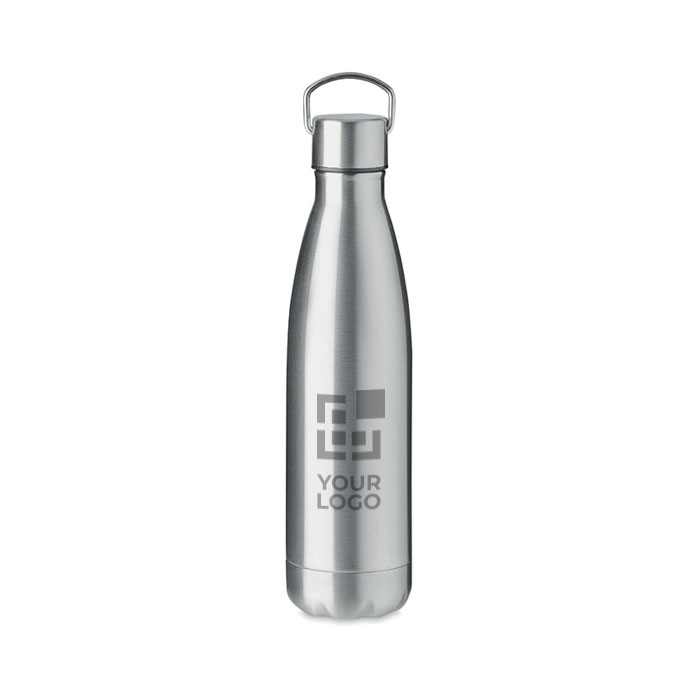 Botella de acero inoxidable de doble pared aislado al vacío con asa en la tapa. Capacidad de 500 ml. Anti fugas.