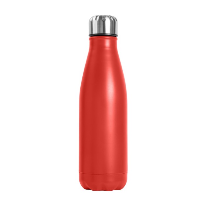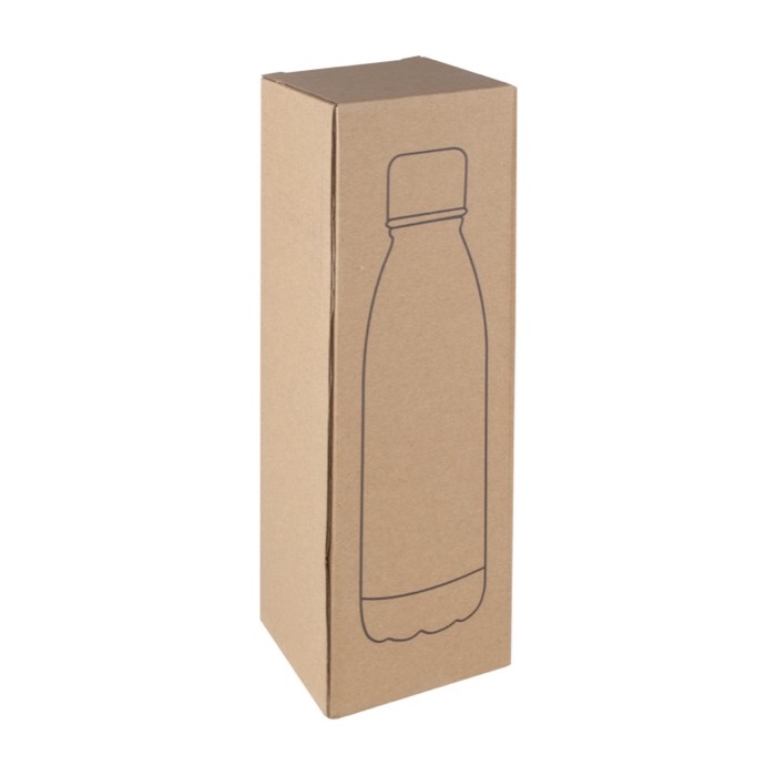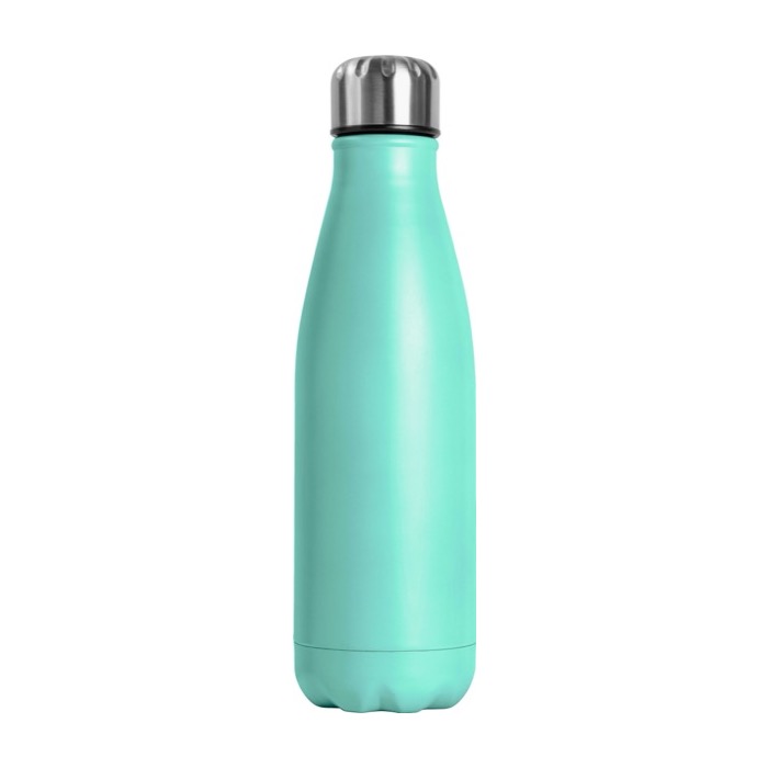 Botella de 750ml fabricada en acero inoxidable en diversos colores con acabado mate. Presentada en caja individual. No usar para bebidas carbonatadas o que sean ácidas.