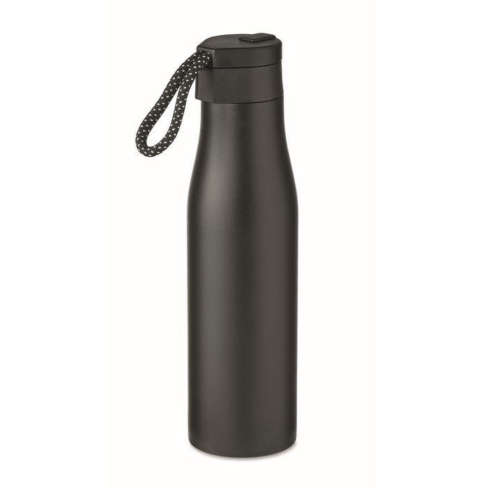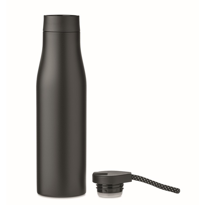Botella de doble pared de acero inoxidable aislante con tapa que incorpora una parte magnética para evitar su perdida.