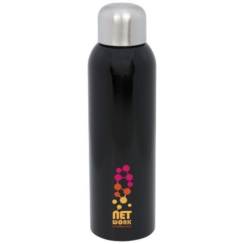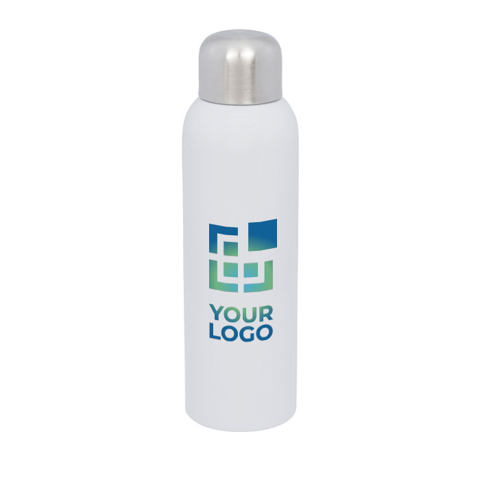 Botella de acero de pared sencilla y tapa de rosca, con una capacidad de 820 mililitros. Para personalizar con el logotipo mediante diferentes técnicas de marcaje y usarla en acciones de marketing o promoción.