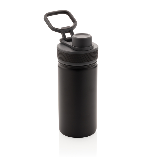 Botellas estilo shaker de acero con función térmica y asa de transporte ideales para practicar deporte. Añade tu logotipo y promociona tu marca.