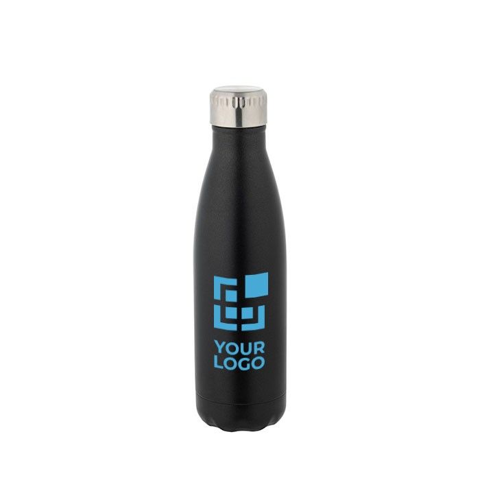 Botella de acero inoxidable con doble pared aislada al vacío, capacidad hasta 510 ml. Tapón estanco. Se suministra en una caja blanca.