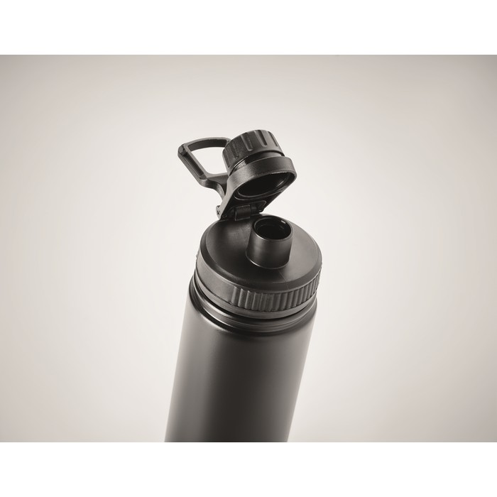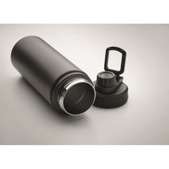 Botella de acero inoxidable de doble pared aislada al vacío, con tapón para beber y asa de transporte. Capacidad: 500 ml.