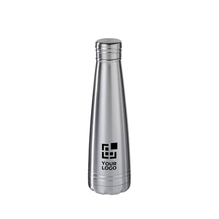 Botellas reutilizables personalizadas hechas en acero inoxidable de doble pared 18/8 con aislamiento al vacío. El interior está recubierto de cobre, lo cual permite tener una temperatura óptima en el interior, manteniendo las bebidas frías unas 48 horas o calientes unas 12. La capacidad es de 500 ml, lo estándar en esta clase de recipientes. Por la calidad de sus materiales y por el hecho de que viene en una caja de regalo Avenue se percibe como un obsequio de alto valor, motivo por el cual puede ser adecuada para momentos especiales o para personas con las cuales se mantenga una relación laboral o comercial prolongada.