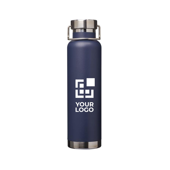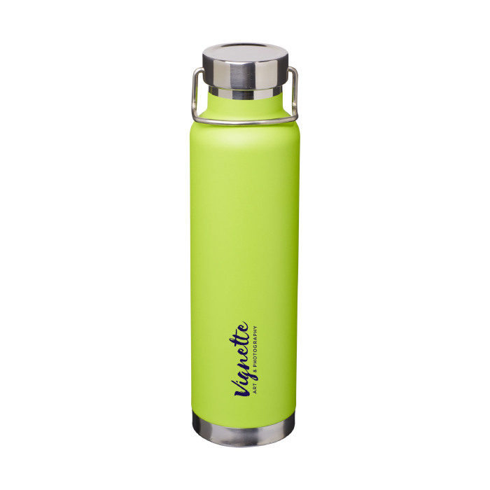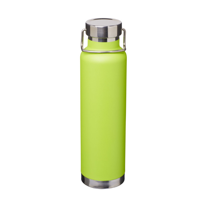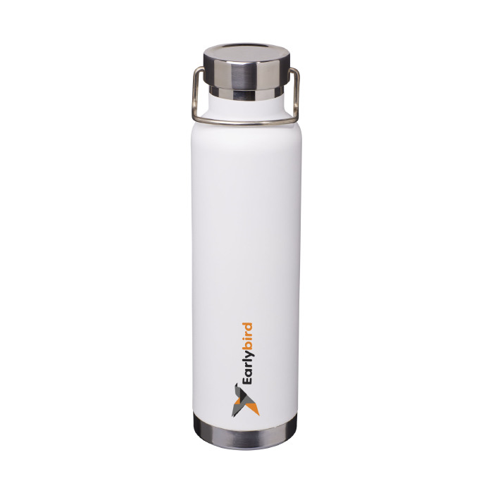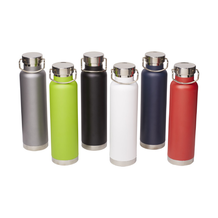 Botellas con logo hechas de acero inoxidable y pared doble con aislamiento de cobre, lo cual está pensado para que el líquido del interior esté unas 12 horas caliente y 48 horas frío (el tiempo podría variar en función de las condiciones). Además, este modelo en concreto tiene una amplia abertura pensada para que el llenado o vacío sea lo más cómodo posible, pudiendo colocar, incluso, cubos de hielo pequeños. Por su estructura, se evita la condensación en el exterior del recipiente y, además, tiene una tapa antiderrames con cierre, todo hecho de acero inoxidable también. La capacidad de la misma es de 650 ml y está presentada en una caja de regalo Avenue. Amplia gama de colores a elegir.