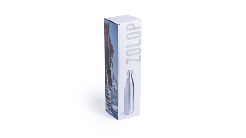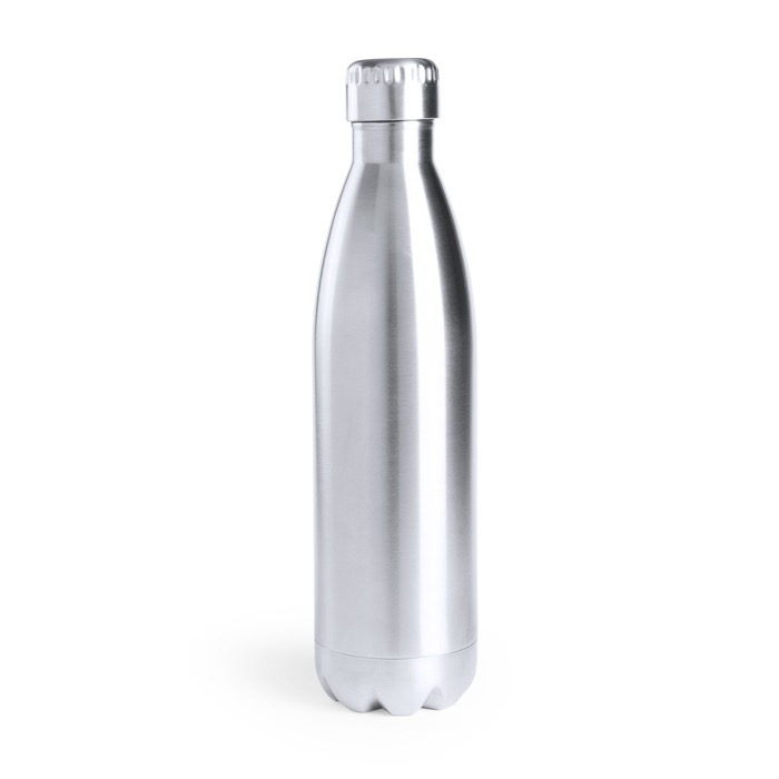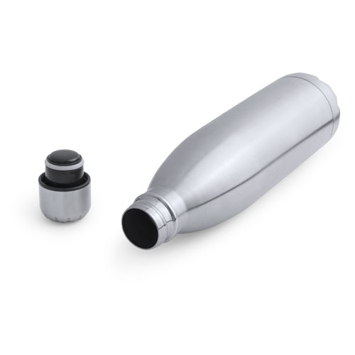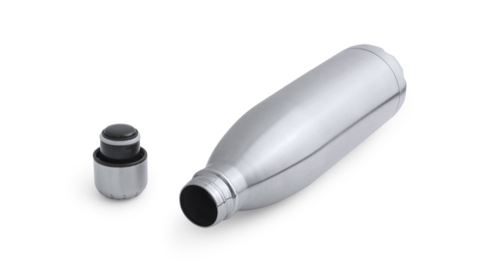 Botella metálica de gran capacidad con acabado brillante y diseño seguro. Un obsequio práctico para fomentar la hidratación en el entorno laboral.