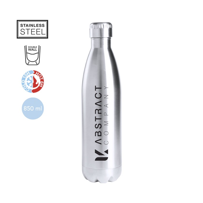 - Botella térmica de 850 ml en acero inoxidable con acabado brillante elegante