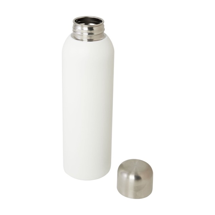 Botella fabricada con materiales reciclados y acero inoxidable reciclado RCS. Diseño elegante, tapa de rosca fácil de abrir y cerrar, ideal para personalizar.