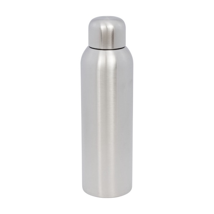 Botella de 820 ml fabricada con materiales reciclados y tapa de rosca para fácil apertura. Hecha de acero inoxidable reciclado con certificación RCS, robusta y de larga duración.