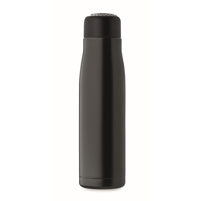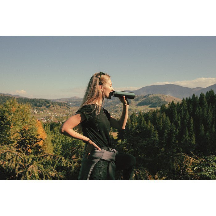 - Botella térmica de 500 ml con doble pared aislada al vacío que mantiene la temperatura de las bebidas por más tiempo