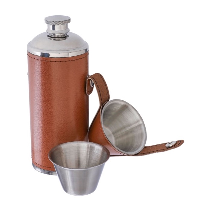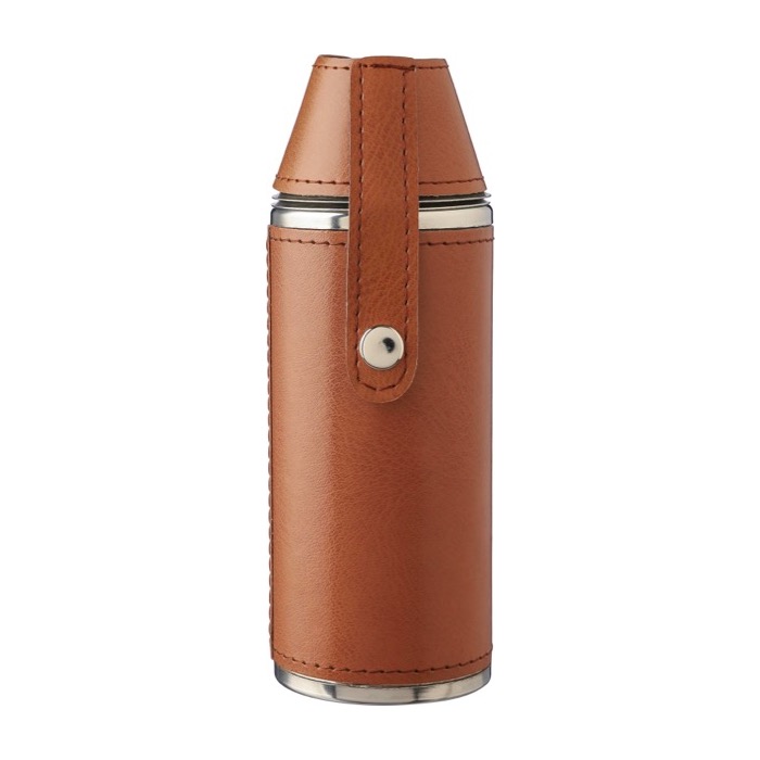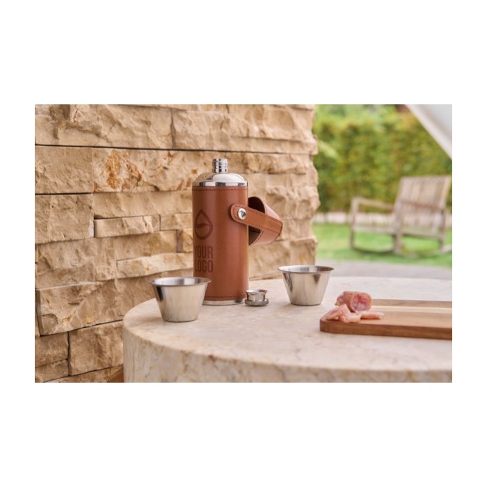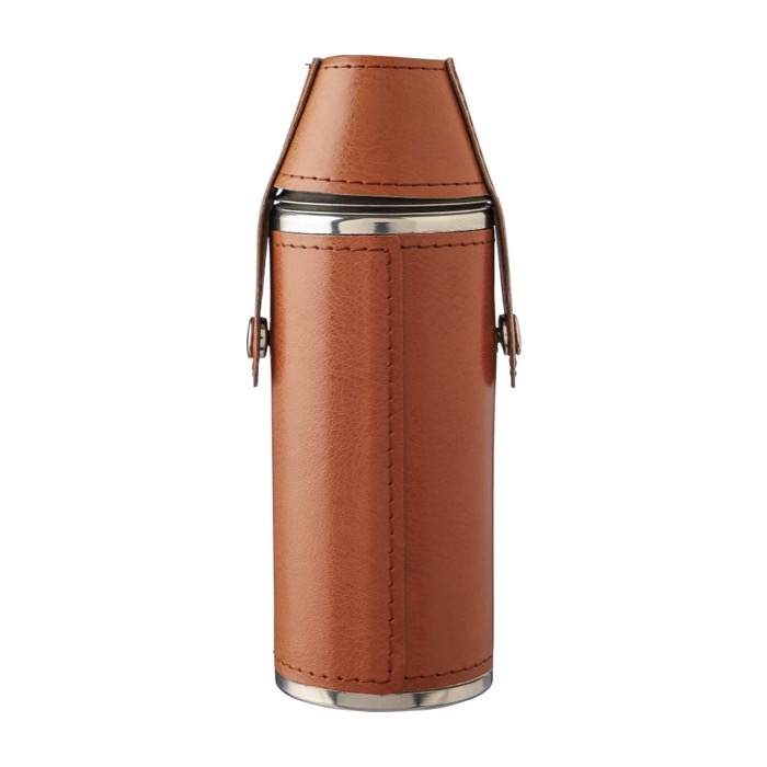 Botellas de acero con funda de cuero y 2 vasos 230ml