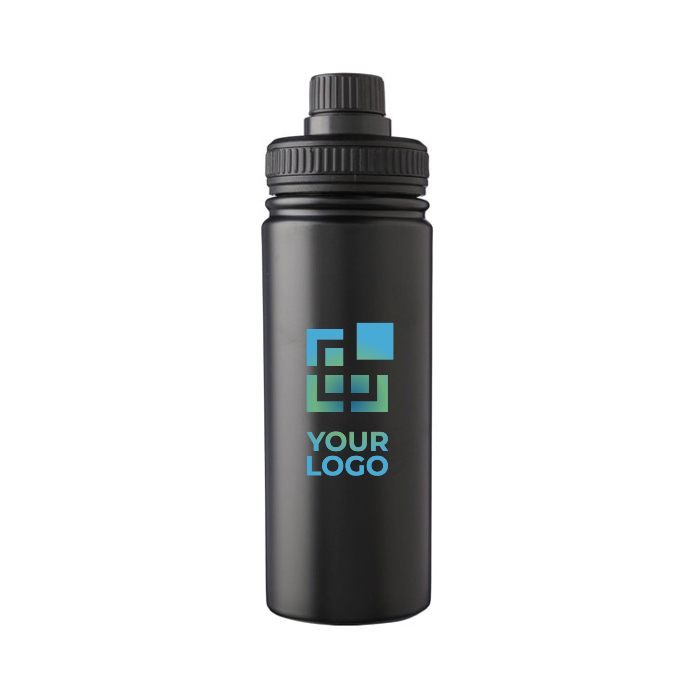 Botellas con logo diseñadas para conservar la temperatura de las bebidas por más tiempo. Disponen de tapa con pico de rosca y asa para un uso cómodo.