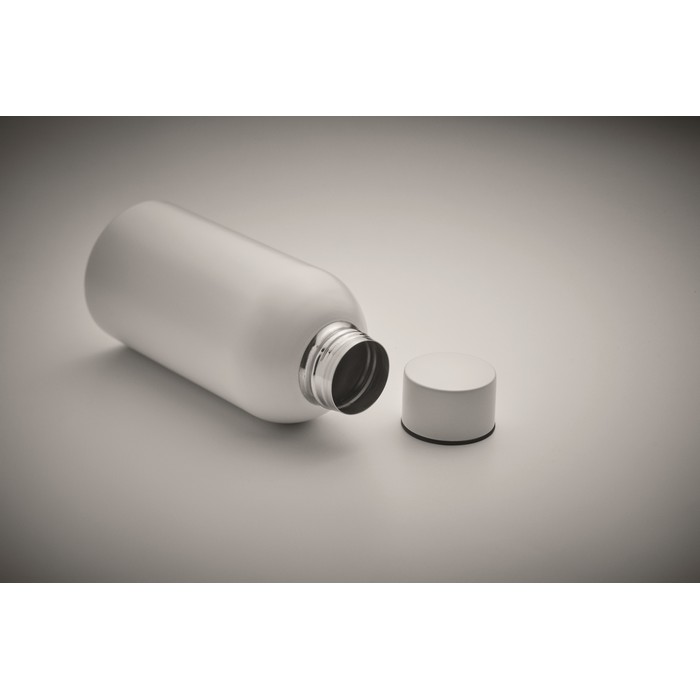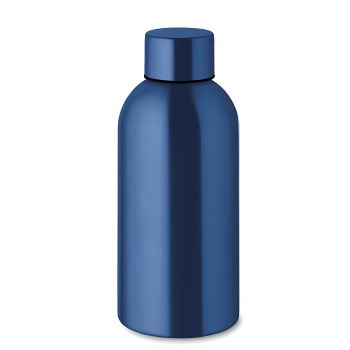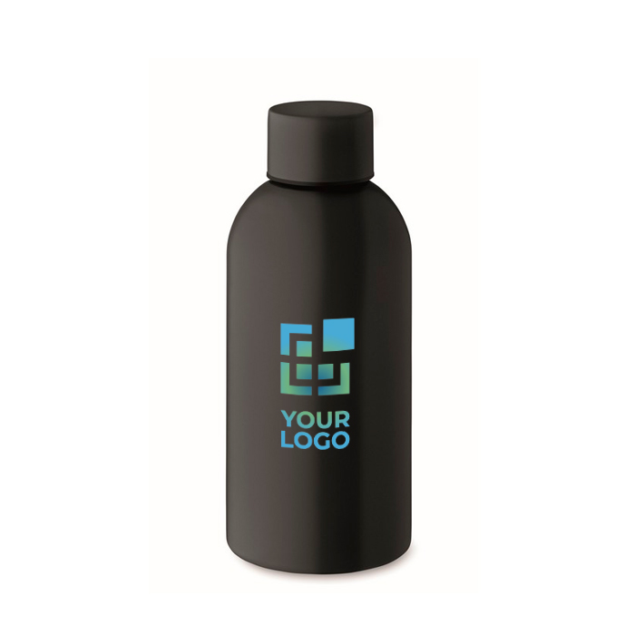 Botella antifugas de acero reciclado, ideal para mantener las bebidas protegidas. Se puede personalizar con logotipo y utilizar como soporte promocional.