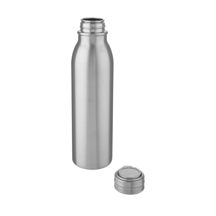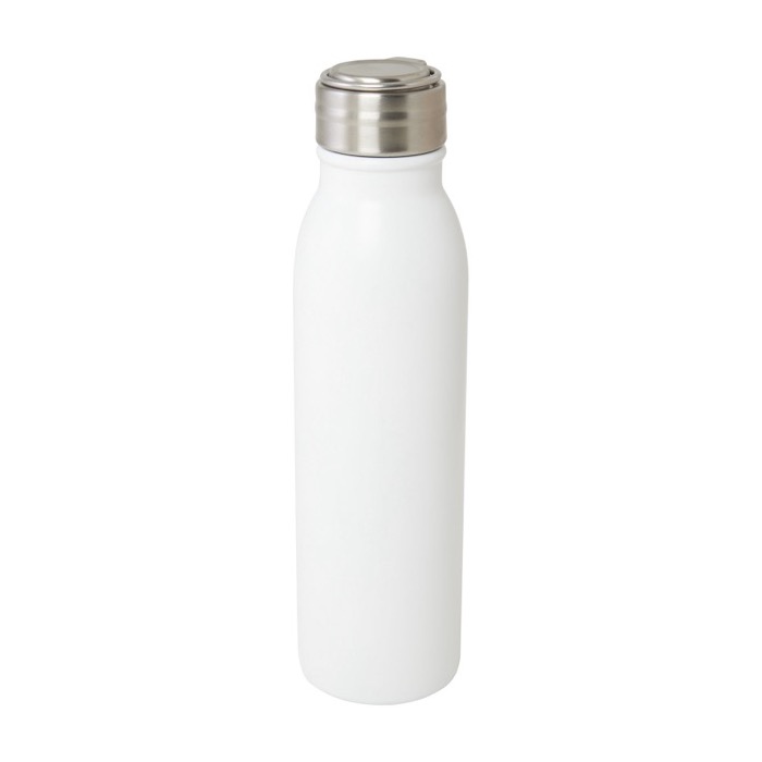 Botella de acero inoxidable de una capa con certificación RCS. Su tapa a prueba de derrames y el asa de zinc hacen de esta botella de 700 ml una opción duradera y práctica. No contiene BPA y cumple con las normativas de seguridad alimentaria LFGB y REACH. Es adecuada para la mayoría de los portavasos de coche. Se recomienda lavarla a mano y se presenta en una caja de cartón reciclado.