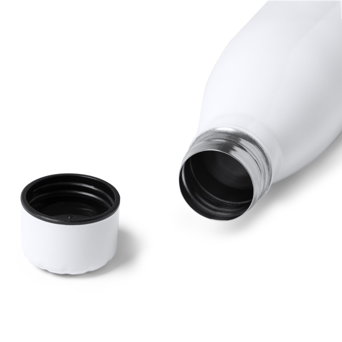 Bidón metálico de 700 ml apto para sublimación, ideal para personalizar con tu logotipo a todo color. Un regalo promocional práctico y con gran visibilidad.
