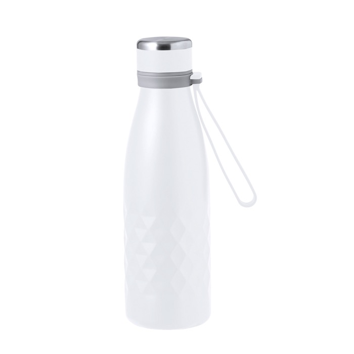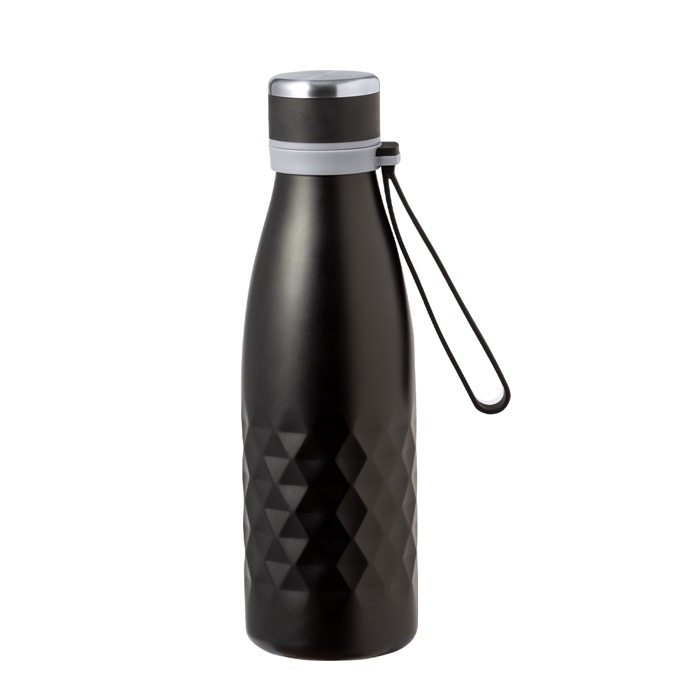Elegante bidón térmico de 550 ml de acero inoxidable de doble pared. Incluye tapón a rosca y asa de silicona a juego. Presentado en caja individual de diseño kraft. Ideal para mantener tus bebidas a la temperatura perfecta.