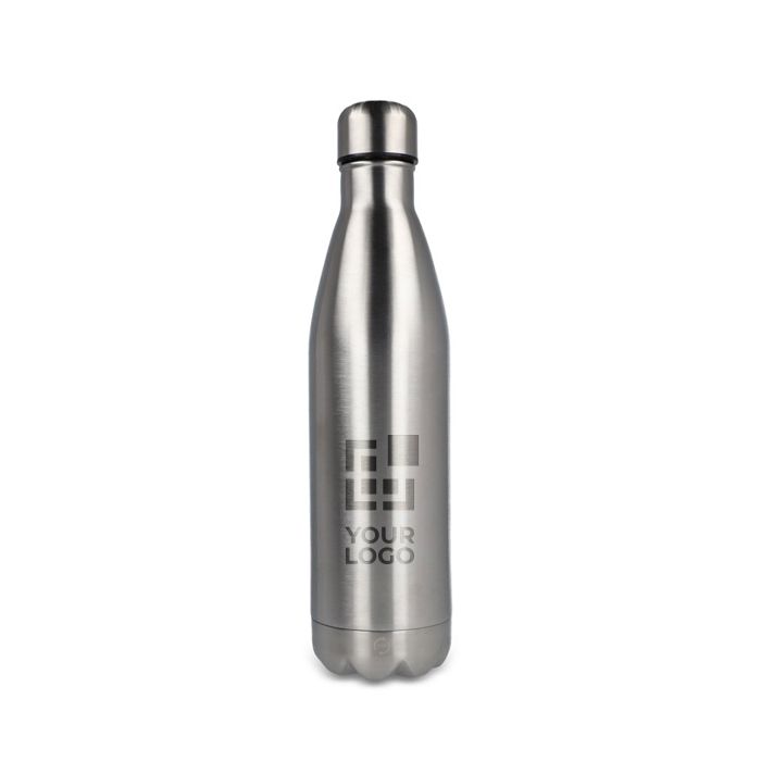 Botella térmica de acero reciclado con aislamiento al vacío para mantener la temperatura durante horas. Una opción ideal para campañas sostenibles.