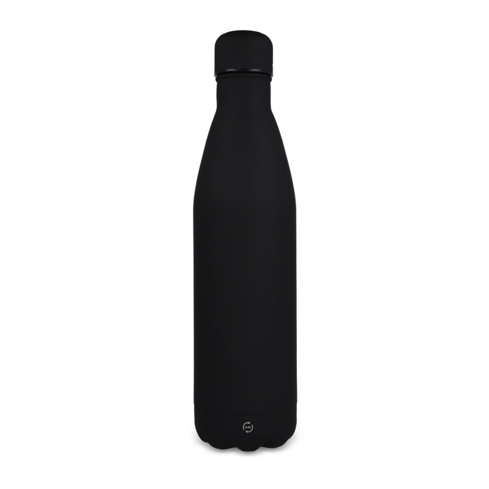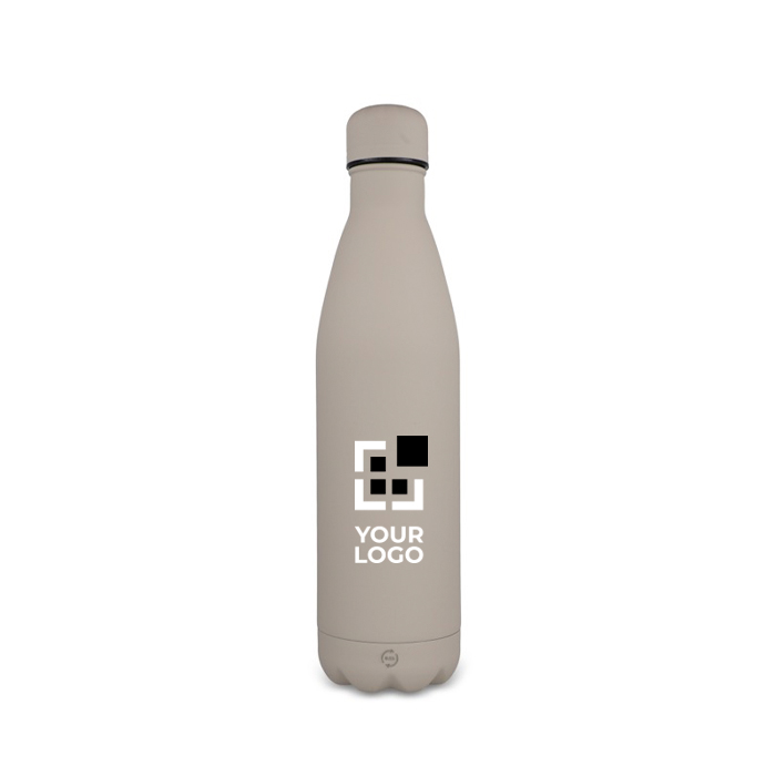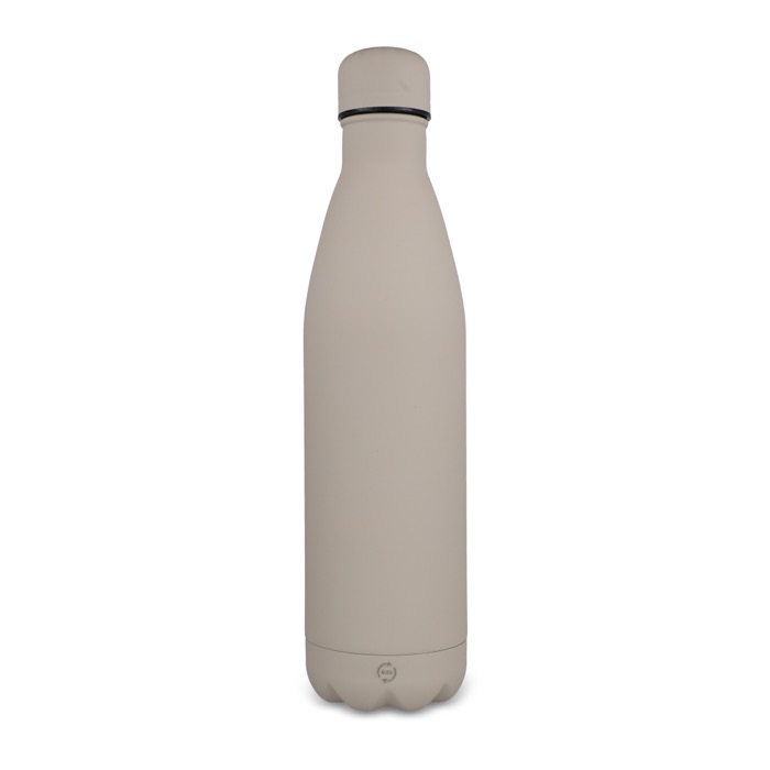 Botella térmica de acero reciclado con acabado suave al tacto, diseñada para conservar la temperatura de las bebidas. Una elección práctica que refleja el compromiso sostenible de tu empresa.