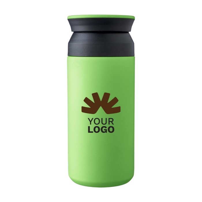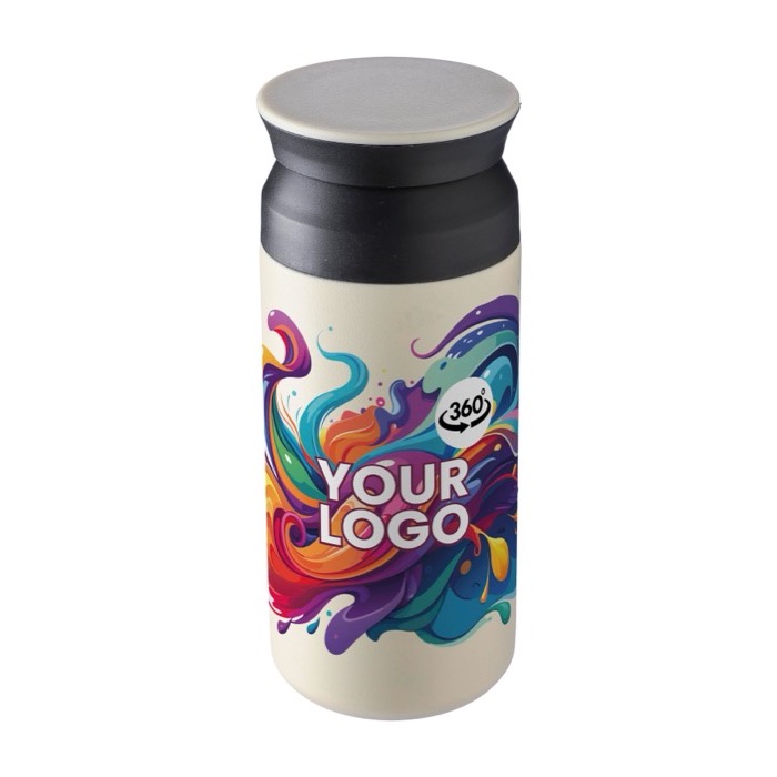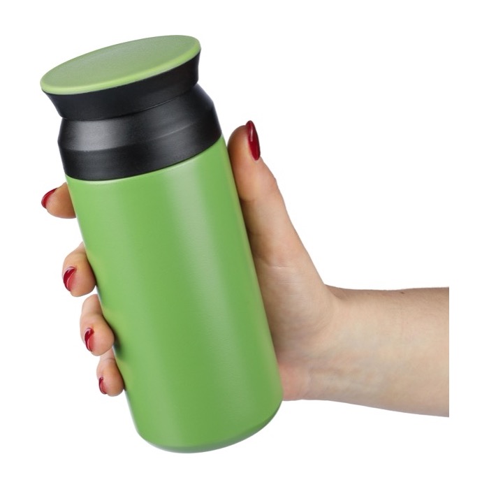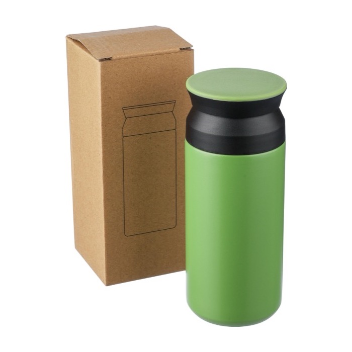 Vaso con acabado mate y tapa de seguridad, presentado en caja de regalo ecológica. Mantiene las bebidas calientes hasta 12 horas y frías hasta 18.