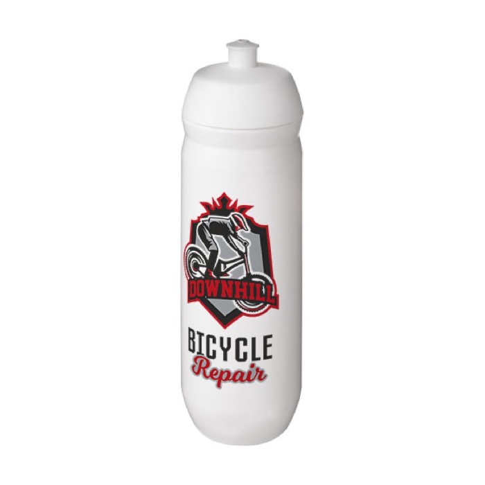 Bidón deportivo de una sola pared con tapa de rosca abatible. Este bidón estrujable fabricado con plástico MDPE flexible es perfecto para actividades deportivas. Capacidad de 750 ml. Fabricado en el Reino Unido.