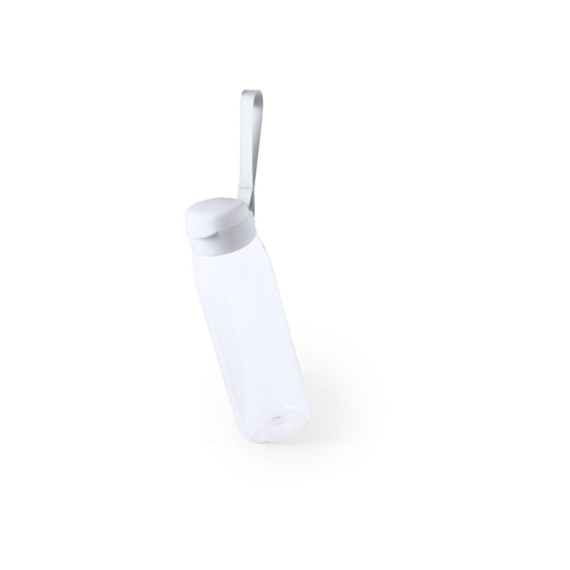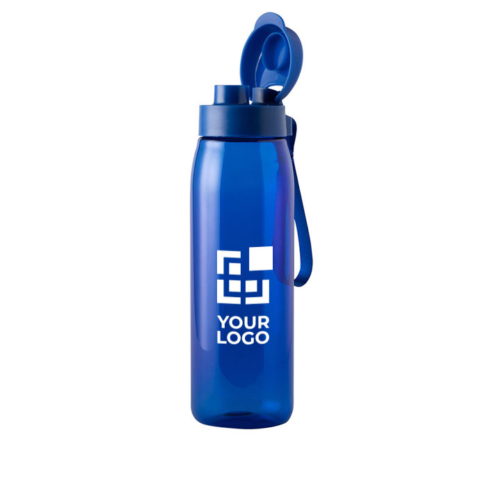 Bidón de tritán personalizable de 820 mililitros, siendo este un formato grande, y teniendo cierta resistencia al calor (70ºC). Al ser de tritán es BPA free. El acabado es de colores transparentes. Cuenta con tapón dosificador de seguridad y cinta de transporte.