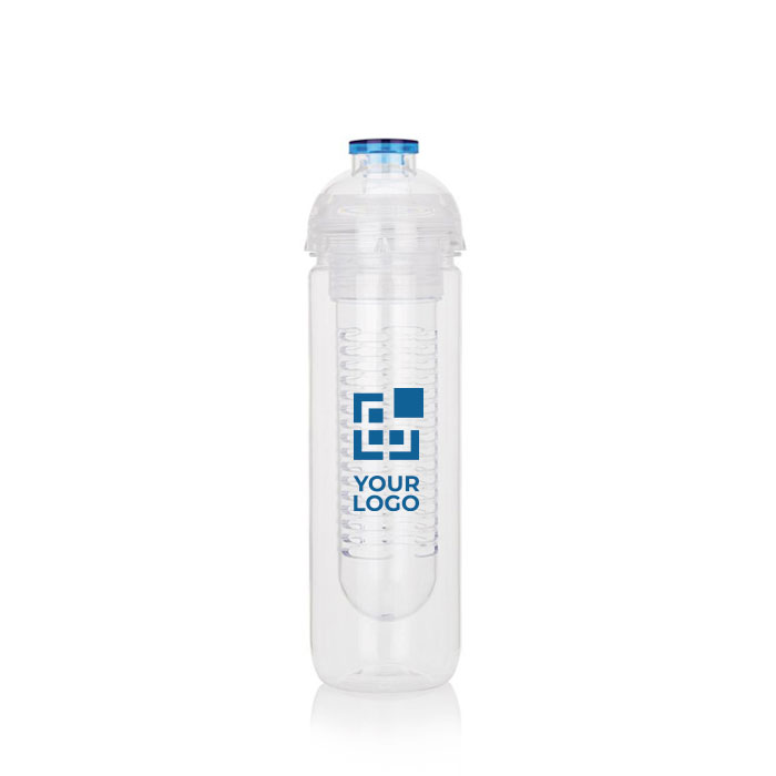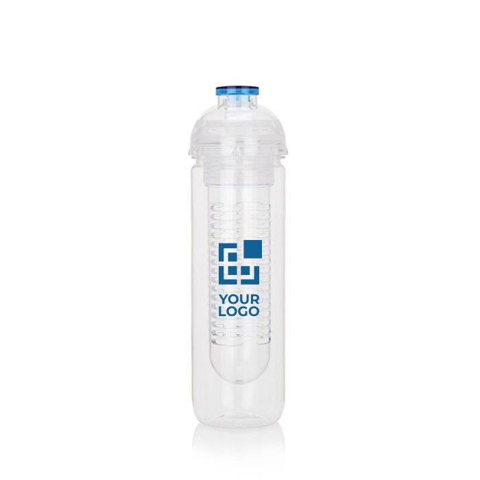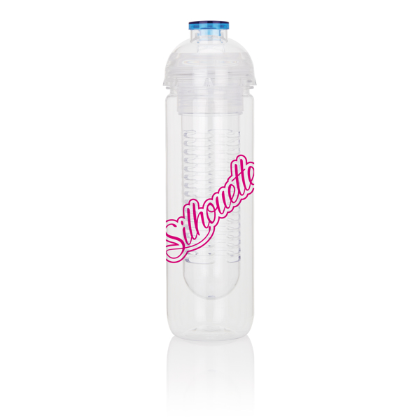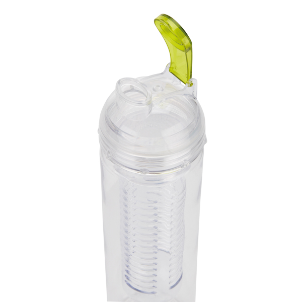 Botella de tritán de 500ml con compartimento para frutas. Ideal para mezclar la bebida con vitaminas y sabor añadiendo fruta fresca. También le puedes añadir cubitos de hielo.