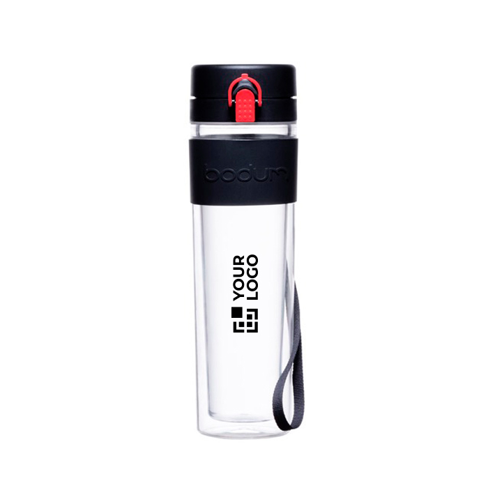 Si estás buscando un modelo resistente y que tus clientes valoren esta opción es para ti. Fabricadas de tritán con cinta de silicona y tapa de rosca antigoteo.