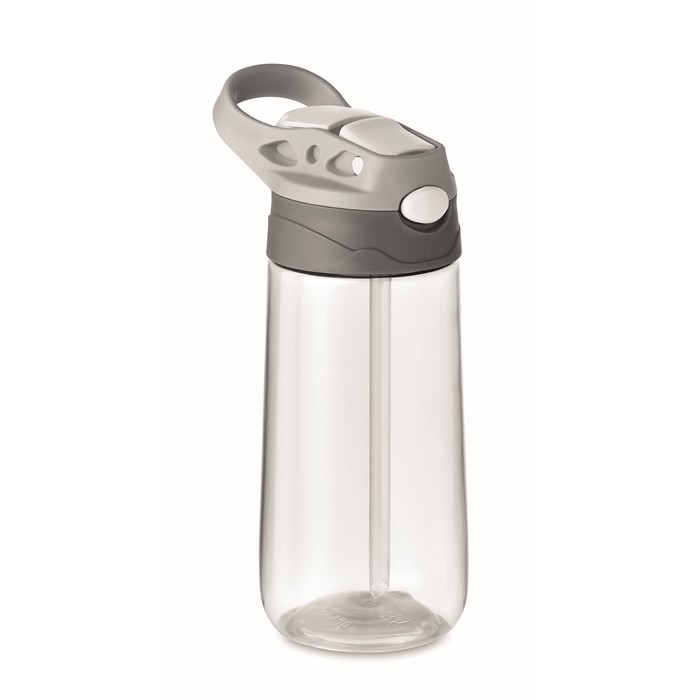 Botella de Tritán™ sin BPA que puede contener hasta 450 mililitros. Boquilla de silicona en la tapa. No apta para bebidas con gas.