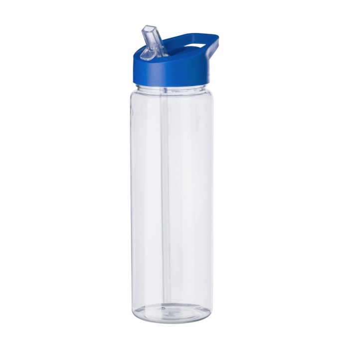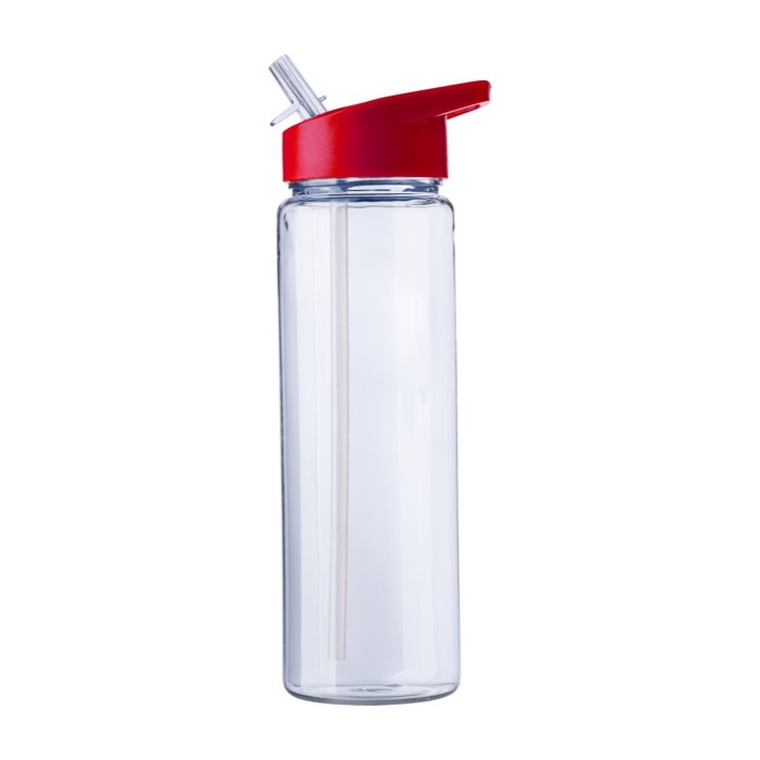 Botella fabricada en plástico reciclado (RPET) con pajita plegable integrada para mayor comodidad.