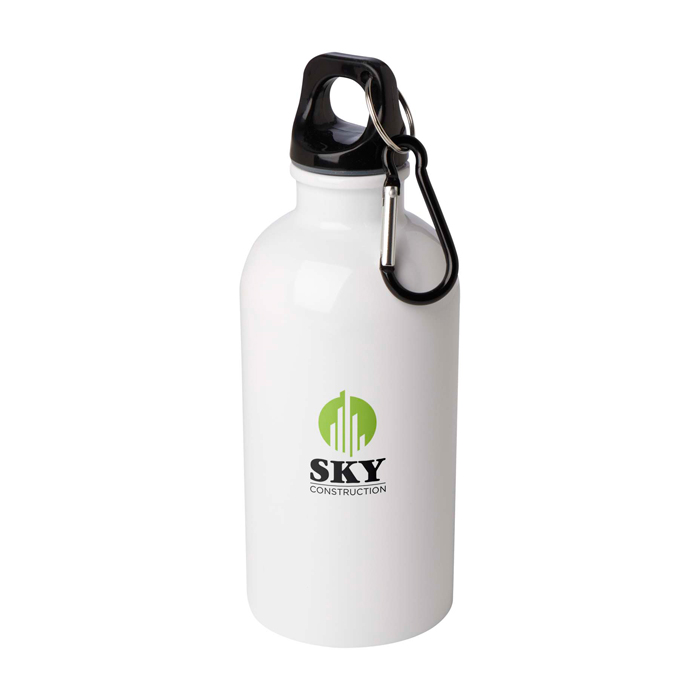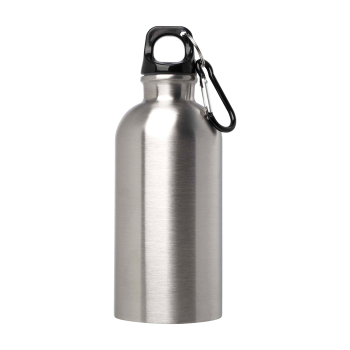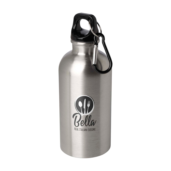 Botella de acero reciclado para empresas dinámicas. Puede engancharse fácilmente a una bolsa y resulta ideal para jornadas deportivas o excursiones.