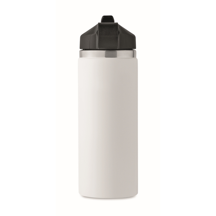 Descubre la botella aislada de acero reciclado con doble pared y tapa antifugas. Pajita integrada y diseño práctico, ideal para regalar y usar en cualquier ocasión.