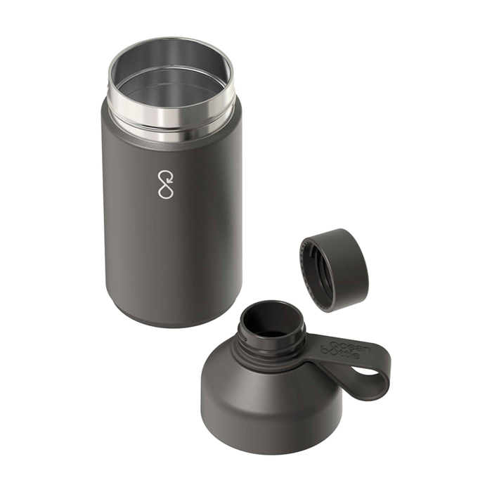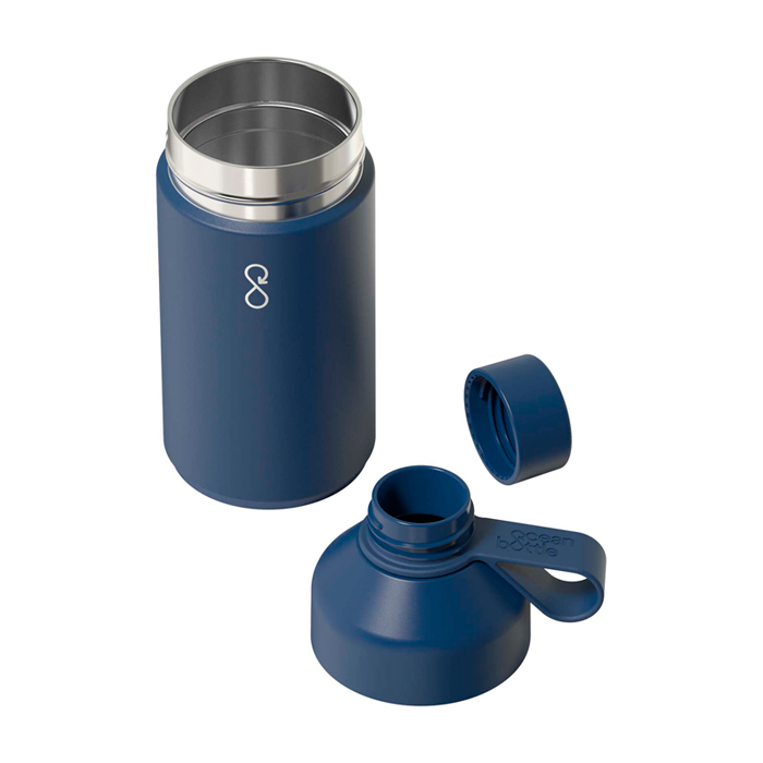 Botella Ocean Bottle con aislamiento al vacío y tapa antifugas. Reconocida por su diseño sostenible, mantiene la temperatura adecuada durante más tiempo.