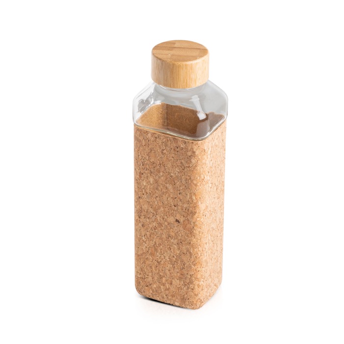 Esta botella de cristal con funda de corcho y tapa de bambú aportará sostenibilidad tanto a la oficina de tus clientes y empleados como a su estilo de vida.