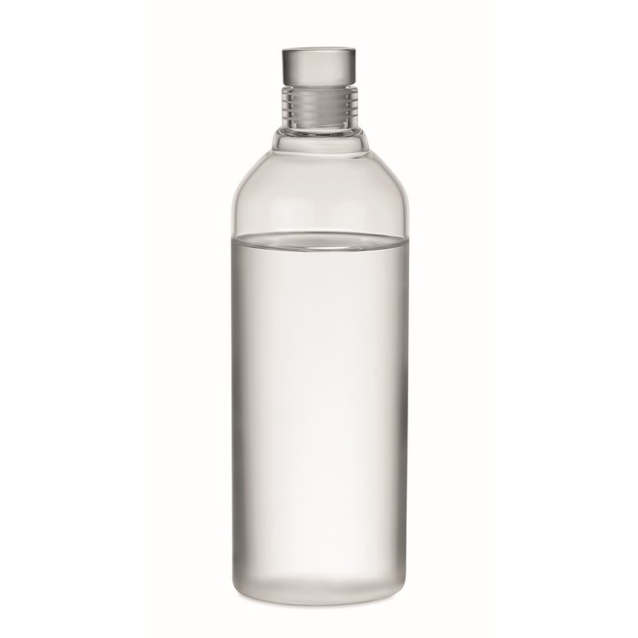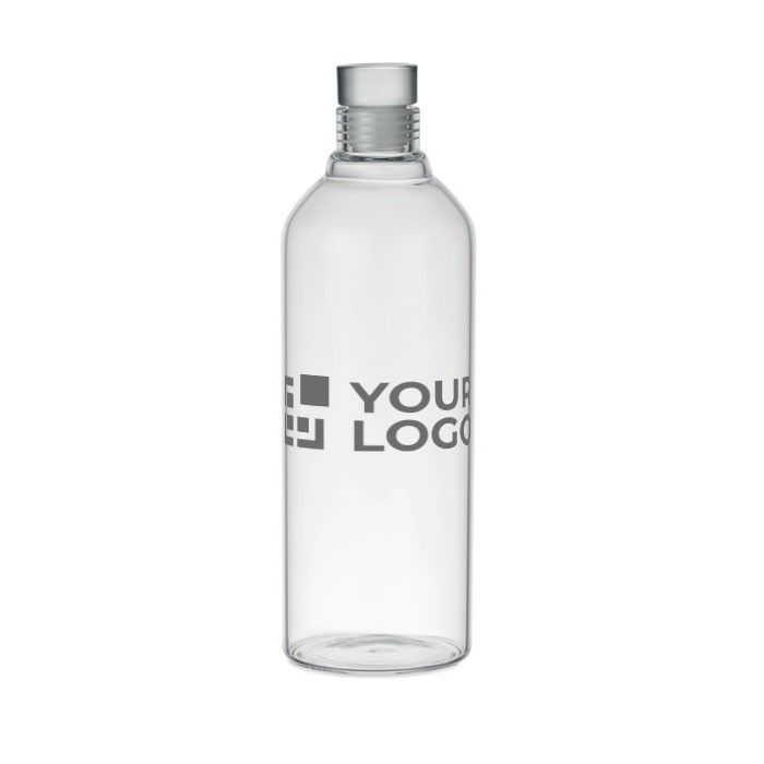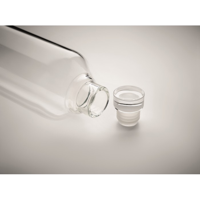 Botella de vidrio con tapón antifugas. Para tener en la oficina, en el escritorio o en el hogar. De gran tamaño para tener disponible tu bebida todo el día.