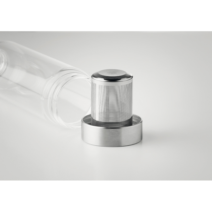 Botellas de cristal de borosilicato de alta calidad. Tiene un infusor de té, una capacidad de 500 mililitros y una funda de neopreno para mejorar su protección ante golpes.
