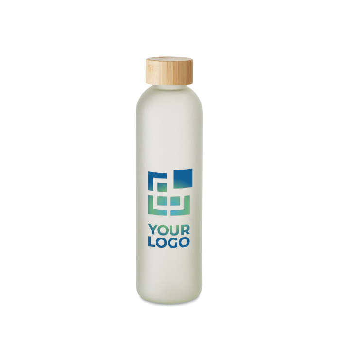 Atrae miradas con esta botella de vidrio para sublimar. Su tapa de bambú y diseño exclusivo la hacen ideal para destacar tu imagen en acciones promocionales.