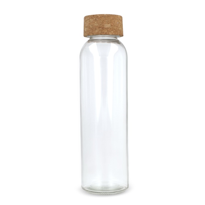 Botella de diseño sencillo y minimalista, equipada con una elegante tapa de corcho natural. Una opción cómoda y práctica que demuestra que menos es más.