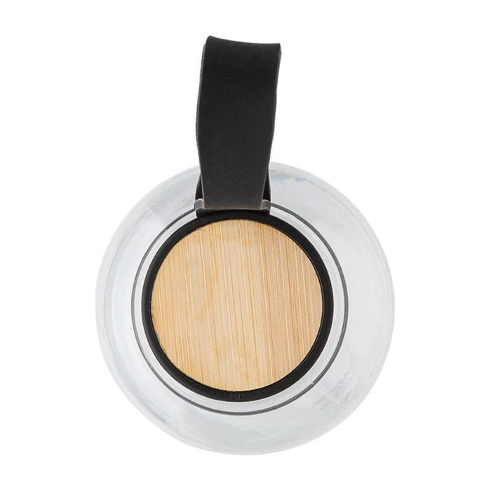 Esta botella sostenible tiene un diseño estiloso gracias a su tapa con detalle de bambú y asa de goma que facilita su transporte. Graba tu logo y regálala.