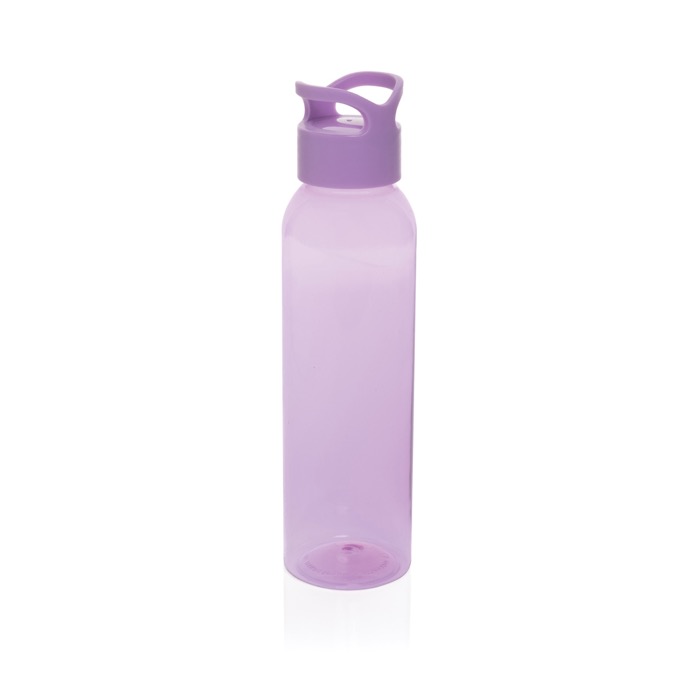 Botella de agua reciclada reutilizable (650 ml) con tapón de rosca. Hecha de RPET certificado RCS, ideal para bebidas frías y presentada en envoltorio de papel a granel.
