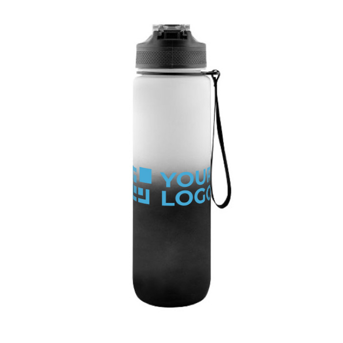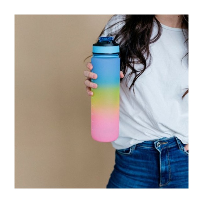 Botella de un litro con marcador de capacidad. Diseño degradado con tapón de seguridad.