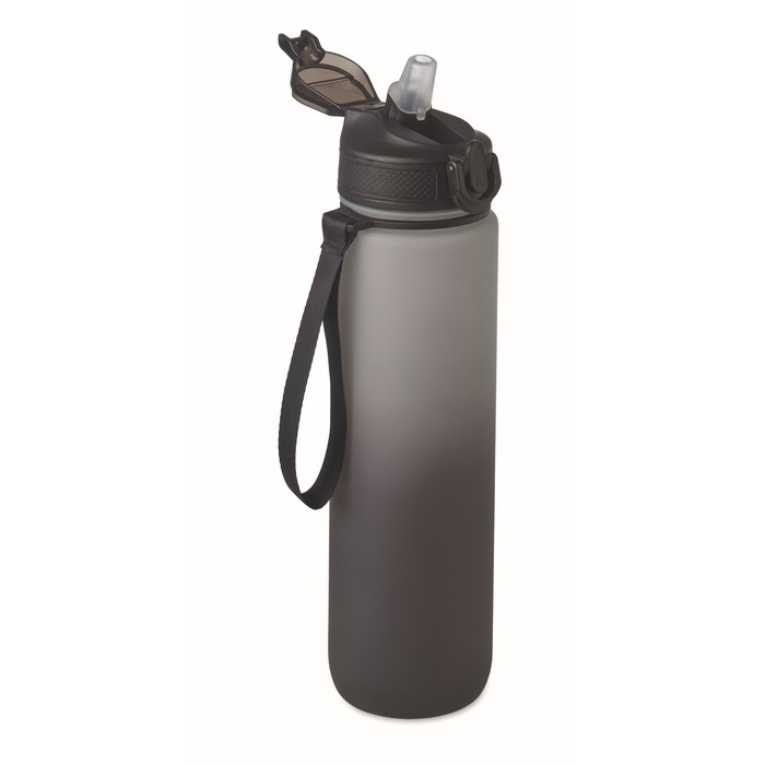 - Botella deportiva de 1 L fabricada en RPET resistente y ligero