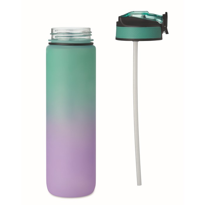 Botella con marcador de tiempo, boquilla y asa de RPET 1L