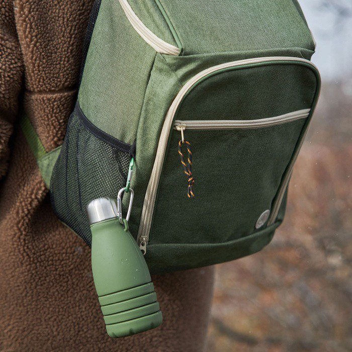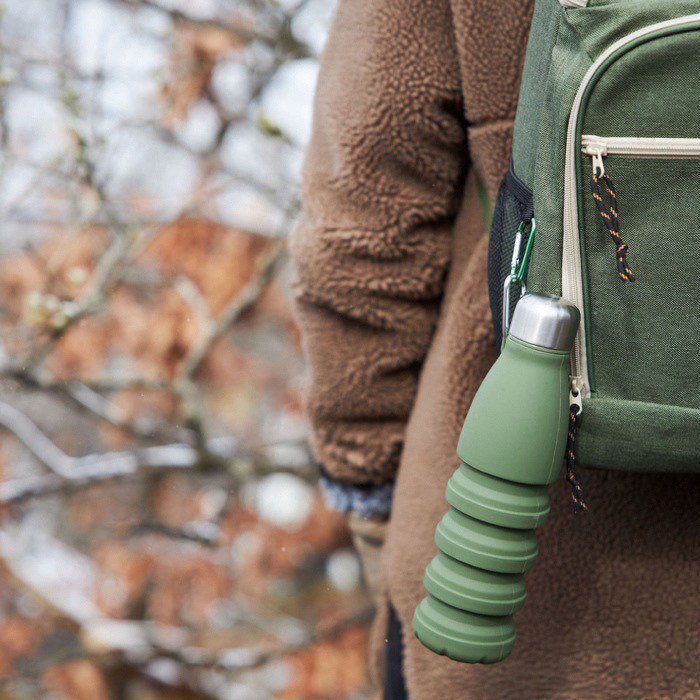 Botella plegable y ligera, fácil de enganchar a la mochila o guardar en la bolsa. Perfecta para cualquier actividad, ya sea en el campo o la ciudad.