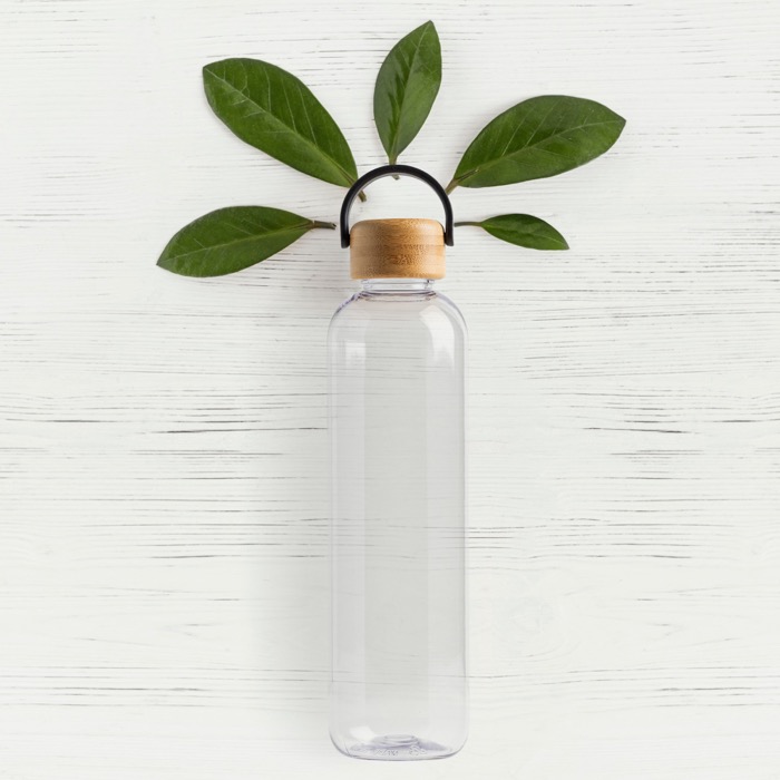 Botella RPET con tapa de acero inoxidable y asa para transporte 780ml