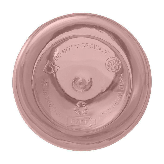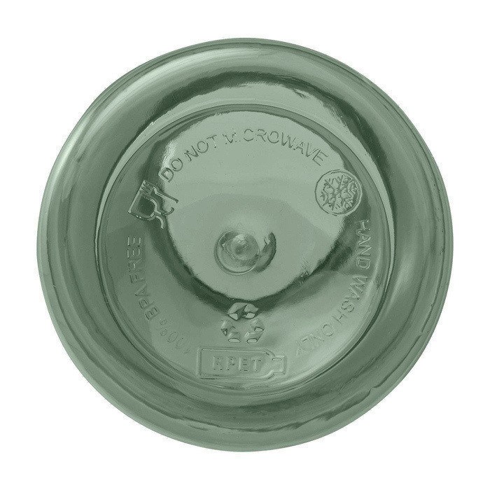 Botella fabricada con plástico reciclado. Con tapa de rosca y mosquetón para fácil transporte, 100% reciclable y apta para seguridad alimentaria.